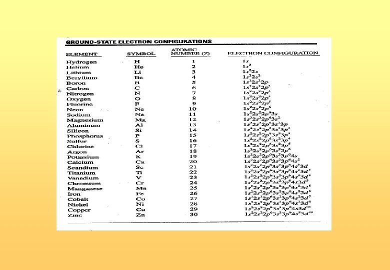 Configuración electrónica indica en qué orbitales se encuentran los electrones. Principio de Pauli “en un átomo no puede haber dos electrones con los 4 números cuánticos iguales”. Regla de Hund “cuando se agregan electrones a una subcapa a medio llenar, la configuración más estable es aquella que tiene el mayor número de e- desapareados”.