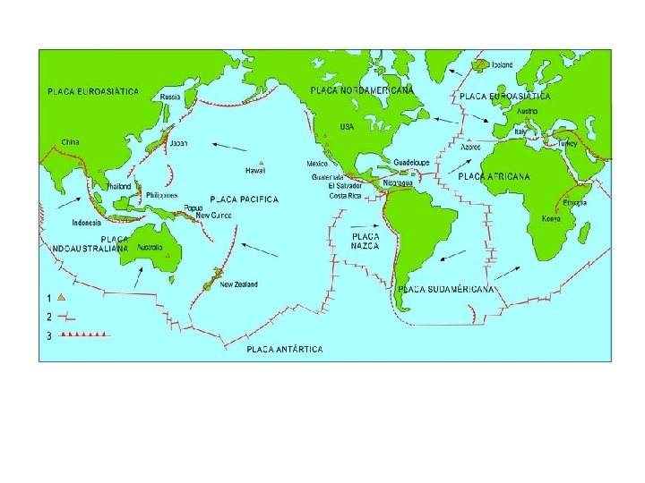 Els límits de les plaques • Divergents. Són límits en els quals les plaques se separen unes de les altres. • Convergents. Són límits en els quals una placa xoca contra una altra. 3 tipus. • Transformants. Són límits on les vores de les plaques llisquen una respecte a l'altra al llarg d'una falla de transformació
