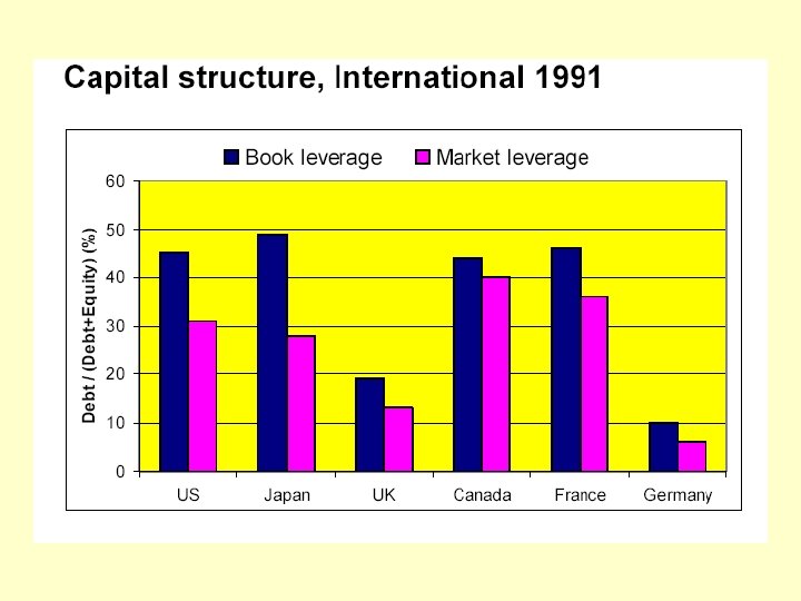Modigliani – Miller - Intuición q MM sigue válido. La torta no se afecta por la estructur financiera. Tamaño de la torta = Valor de los F de F antes de impuestos, pero. . . q. . . la AFIP se lleva una porción de la torta y. . . q. . . la política financiera afecta el tamaño de la torta. q Al ser los intereses deducibles del impusto a las ganancias, el VA de la porción de la AFIP puede reducirse usando deuda en lugar de patrimonio.