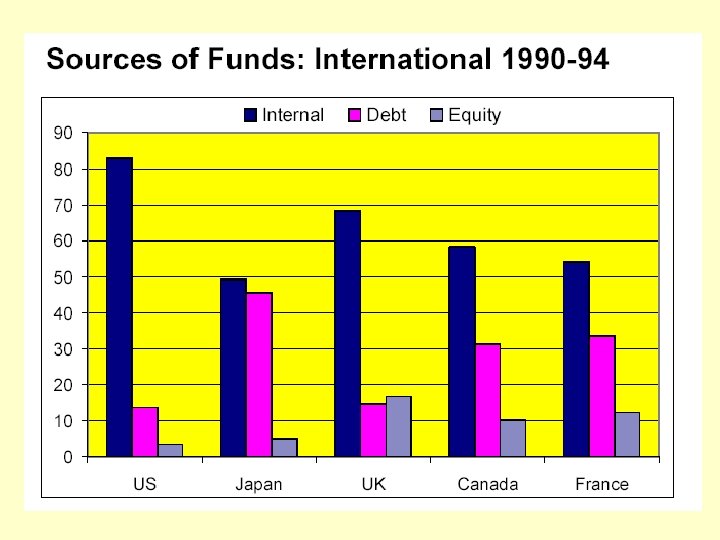 Decisiones de financiamiento • Las inversiones en proyectos implican necesidades de financiamiento Herramienta: flujos proyectados • ¿Cuál es la mejor fuente de fondos? Fondos generados por la empresa (autofinanciamiento) Deuda Capital (emisión de acciones) ¿EXISTE UNA ESTRUCTURA DE FINANCIAMIENTO OPTIMA?