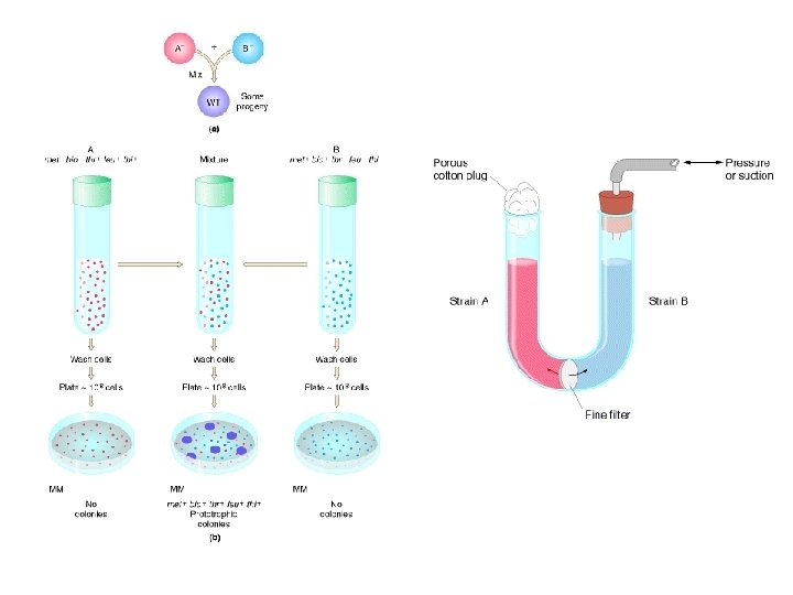 Procedimiento experimental E. coli JM 1452 Str. R (Receptora) + E. coli W 3110/F´Km. Tn 3 en LB (Donadora) Tubo con 1 m. L LB, 0. 5 m. L de JM y 0. 2 m. L de W 3 Incubación a 37°C por 1 hora sin agitación. Caja petri LB con 2% estreptomicina Sembrado por estría E. coli JM 1452 Str E. coli W 3110/F´Km. Tn 3 Mezcla Incubación por 24 horas a 37 °C, refrigerar a 4 °C Parchar 50 colonias aisladas en LB con 1) Estreptomicina y 2) Kanamicina Incubar 24 h a 37 °C Observar y analizar resultados Reportar % de colonias transconjugantes