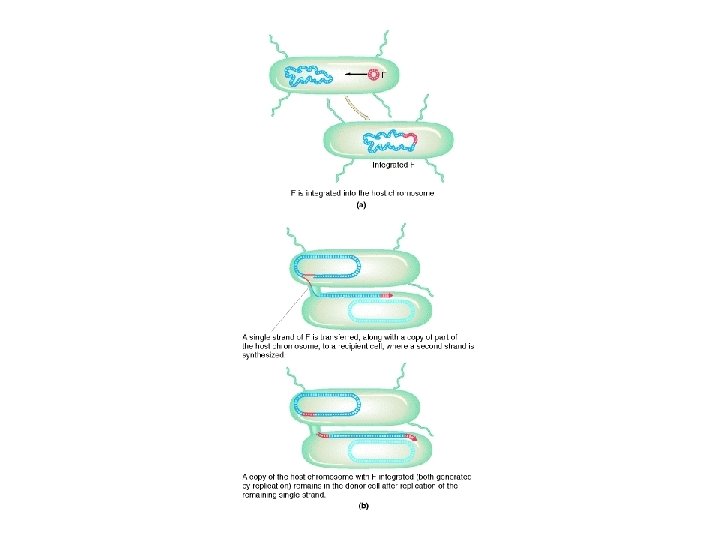 - Bacterias F+ : si el factor F se encuentra libre en el citoplasma. - Bacterias Hfr : si el factor F se encuentra integrado en el cromosoma bacteriano. -Bacterias F-: carecen del factor F (células receptoras)