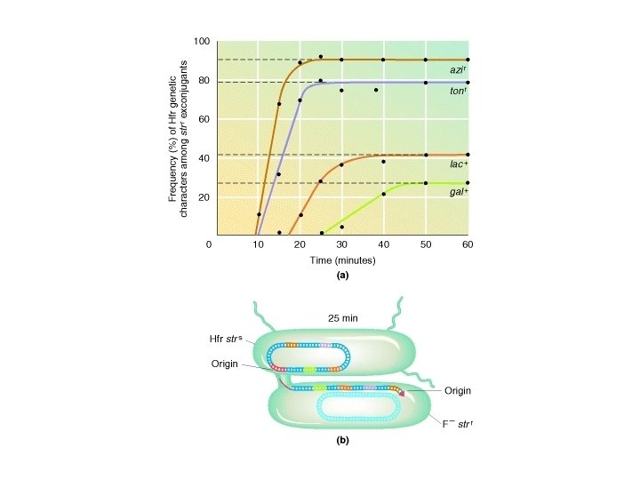 Células Hfr (high frequency recombination) Apareamiento entre las bacterias: Hfr y F-
