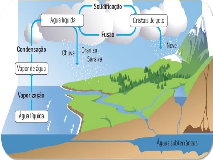ESTADO SÓLIDO • No estado sólido as moléculas de água estão fortemente ligadas. Elas se agitam sem sair da posição. Tem forma e volume definido.