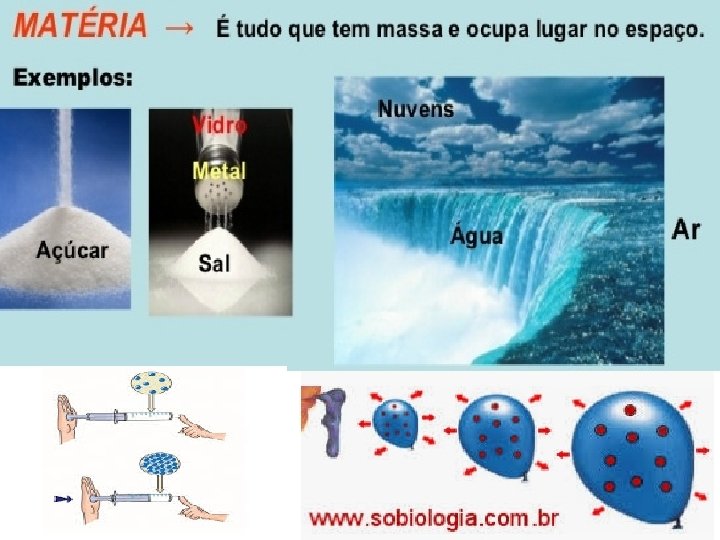 MATÉRIA • É constituída de substâncias como: • Água (H 2 O), sal de cozinha (Na. Cl), gás carbônico ou gás da expiração (CO 2).