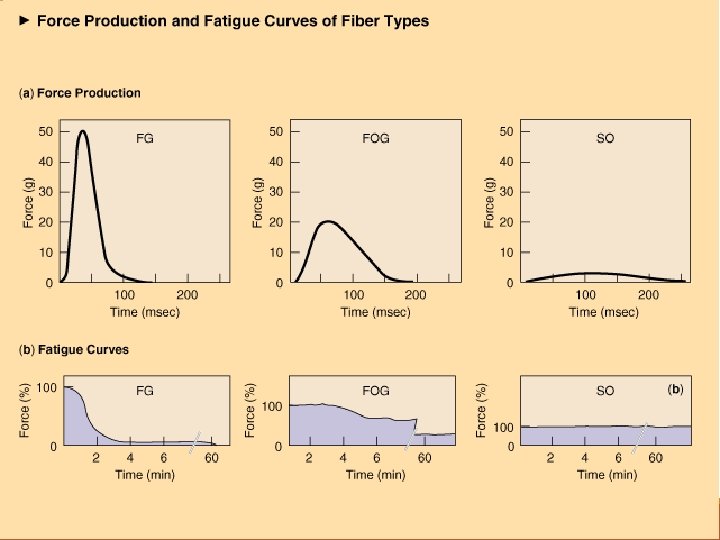 Relação velocidade-força Nenhuma força absoluta de velocidade de movimento é maior no músculo de quando a maioria das fibras rápidas estão ativadas. A velocidade de encurtamento é maior com uma força menor ◦ Isso é verdade para as fibras lentas e rápidas