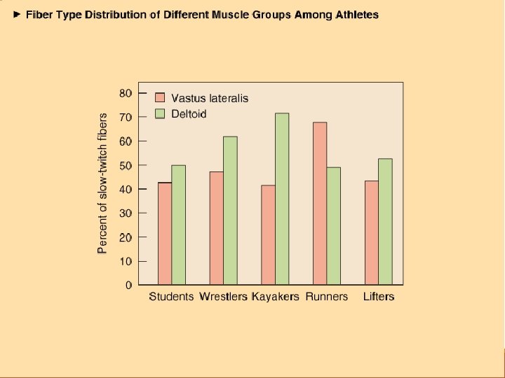 Tipos de fibras individuais Fibras rápidas • Branca • Ativ. Anaeróbica • Alto glicogenio • Contrações potentes e rápidas • Mantém contração por pouco tempo Fibras Tipo IIb Fibras tipo IIa ◦ Fibras intermediárias Fibras lentas Fibras Tipo I ◦ ◦ ◦ Vermelha Limiar baixo Mantém contração Alta conc. Mitocôndrias Alta dens. capilar