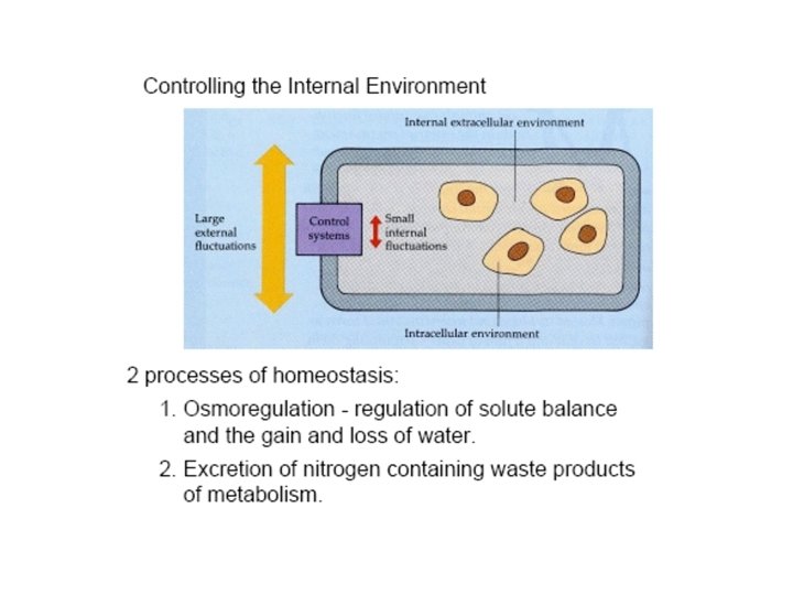 Living organisms • an aqueous solution with solutes contained within a series of membrane system • volume [solutes] maintained within a narrow limits for the optimal function • deviations from physiological composition: incompatible with life • maintain the proper concentrations of body fluid which invariably differ from the environment • unlike cell walls of plants, the animal cellular plasma membrane is not equipped to deal with high pressure differences or large volume changes