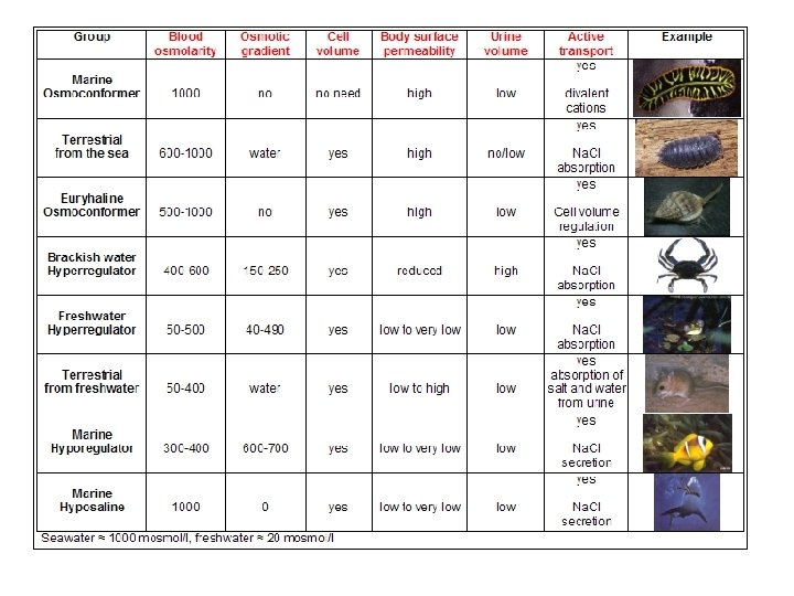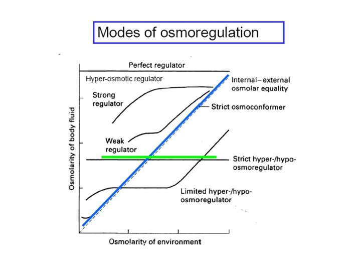 • • • Euryhaline: Stenohaline: isomotic: osmoconformer: osmoregulator: