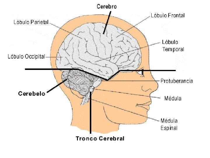 • ENCEFALO SE DIVIDE EN : • 1. - CEREBRO • 2. - CEREBELO • 3. --TRONCO ENCEFÁLICO