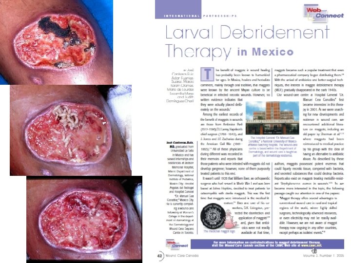 INTRODUCCIÓN LARVATERAPIA • LARVAS DE MOSCA (Lucilia sericata) • ESTERILIDAD (Desinfección) • DESBRIDAMIENTO • ANTIMICROBIANA Mumcuoglu KY. Maggot debridement therapy. Plast Reconstr Surg. 2007; 120: 1738 -9