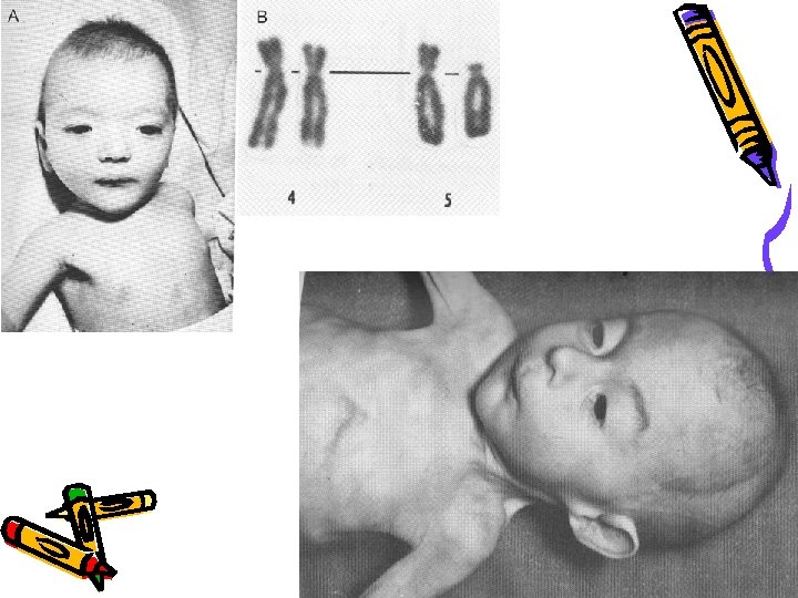 Síndrome de Down • Pliegue prominente en el ángulo de cada ojo y son bajos • Cabezas pequeñas y redondas • Lengua saburral y sobresaliente • Manos anchas y cortas, mueren a los 50 años. • Propensos a enfermedades respiratorias, cardíacas y leucemia • Sufren Alzheimer. • 3/20, 000