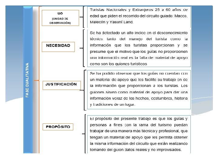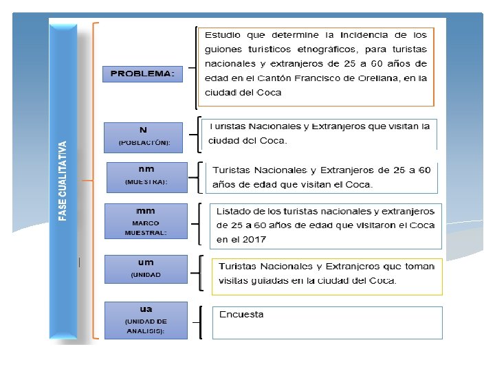 FASE METODOLÓGICA Encuesta DESCRIPTIVO Observación Grupos Focales DISEÑO DE TIPO DE INVESTIGACION EXPLORATORIA Entrevista Técnicas Proyectivas CAUSAL Causa-Efecto CONCLUYENTE Mezcla de descriptiva y causal