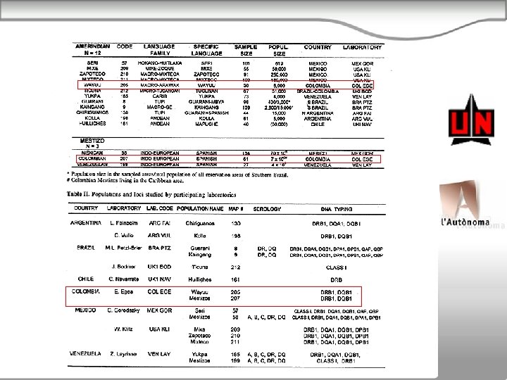 HLA-DRB 1 ALLELES AND HLADRB 1 SHARED EPITOPES ARE MARKERS FOR JRA SUBGROUPS IN COLOMBIAN MESTIZOS Garavito G, Egea E, et al, Human Immunology 65, 2004 Immunology and Molecular Biology Laboratory, Universidad del Norte, Barranquilla, Colombia. Instituto de Biología fundamental. Universidad Autónoma de Barcelona, Spain. Department of Cancer Immunology and AIDS, Dana-Farber Cancer Institute Department of Pathology, Harvard Medical School, Boston, MA Rheumatology Department, Universidad de Antioquia, Medellín, Colombia. South America Rheumatology Outpatient Clinic, Clínica del Niño, Bogotá, Colombia. South America Rheumatology Department, Universidad Nacional de Colombia, Bogotá, Colombia. South America