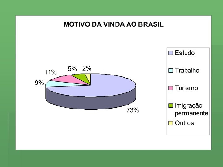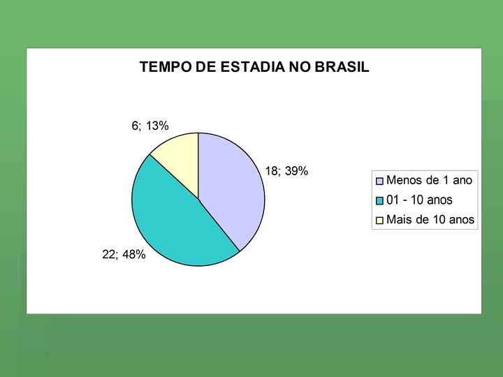 INSTRUMENTO DE PESQUISA Questionário elaborado previamente para as entrevistas por escrito. Assuntos abordados: § § § país de procedência; língua; faixa etária; sexo; grau de instrução; motivo da vinda ao Brasil;