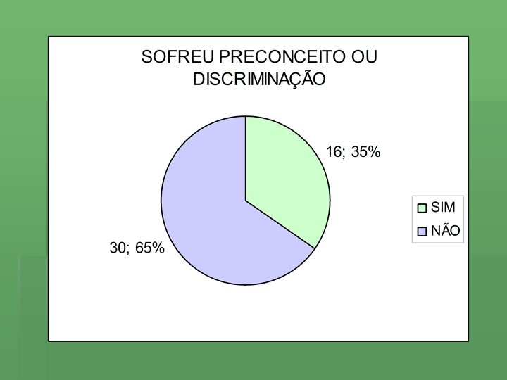 § Preconceito com a língua (exigiram que eu falasse o português); § Preconceito racial (mais de um entrevistado sentiu essa forma de preconceito, principalmente os africanos); § Por causa da cultura e a maneira de ser das pessoas daqui; § Preconceito com os orientais; § Preconceito com os americanos, porque só comem Mc Donald’s e dirigem carros grandes; § Com piadas de português; § Simplesmente preconceito (mais de um entrevistado respondeu isto);