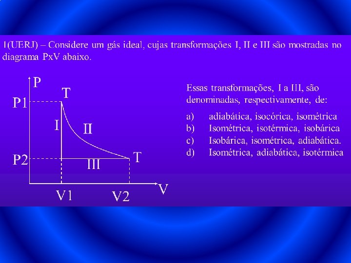 TRANSFORMAÇÃO p 1, V, T 1 ISOMÉTRICA lei de Charles p = k. T ou p 2, V, T 2