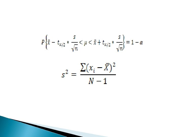 Estymacja - pojęcia Współczynniki ufności są odpowiednikami poziomów istotności czyli α dla testu dwustronnego Powyższe rozważania są trafne jeśli znamy odchylenie standardowe z populacji Gdy nie znamy posługujemy się estymatorem odchylenia standardowego z próby – stąd rozkład przybiera postać rozkładu t – Studenta (o czym szerzej na kolejnych slajdach)