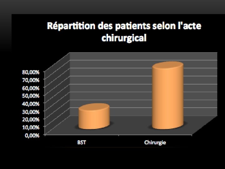 DONNEES EVOLUTIVES Evolution à court terme • Consultation: • 1 mois après la chirurgie • puis tous les 3 mois. • 44. 1 % revus en consultation 3 mois après la chirurgie.