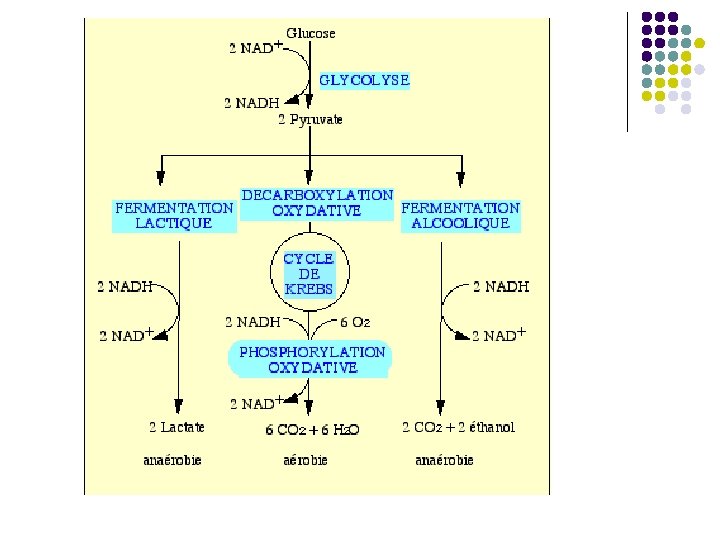 4° étape : Le métabolisme cellulaire Voie aérobie Glc + O 2 ≥ 2 ATP Voie anaérobie, en cas de déficit on O 2 Glc 2 ATP + lactates