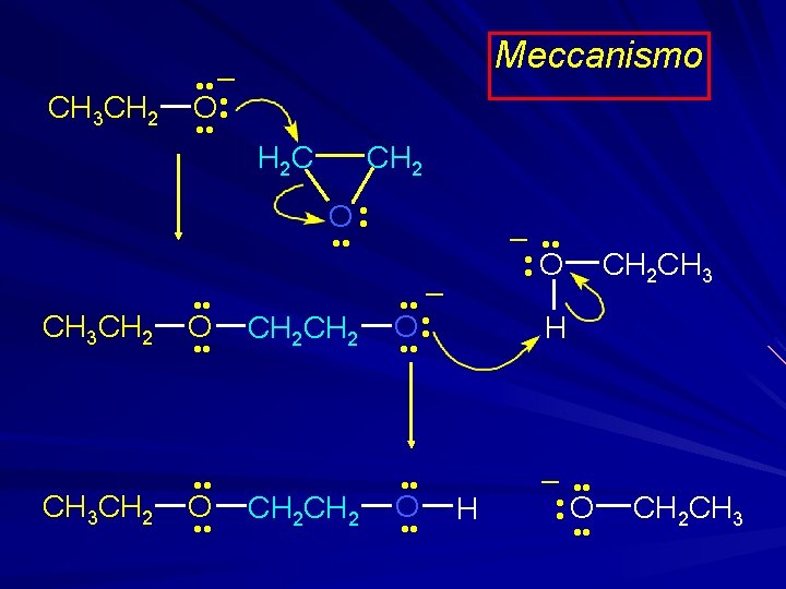 Tutte le reazioni prevedono l’attacco del nucleofilo al carbonio e l’apertura dell’anello R Mg. X CH 2 H 2 C O R CH 2 OMg. X H 3 O + RCH 2 OH
