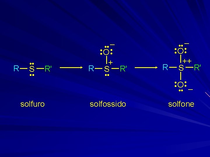 Example • • 1 equiv di H 2 O 2 da il solfossido, 2 equiv danno il solfone SCH • • CH 2 H 2 O 2 (2 equiv) – • • O • • ++ SCH • • O • • – (74 -78%) CH 2
