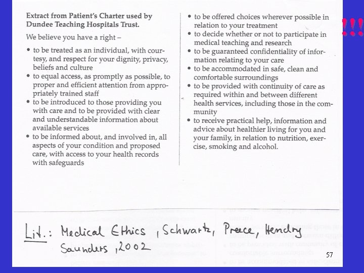 The New Hippocratic Oath – 1998 • Patients Rights I promise that my medical knowledge will be used to benefit people‘s health. Patients are my first concern. I will listen to them, and provide the best care I can. I will be honest, respectful and compassionate towards patients. I will do my best to help anyone in medical need in emergencies. I will make every effort to ensure that the rights of all patients are respected, including vulnerable groups who lack means of making their needs known.