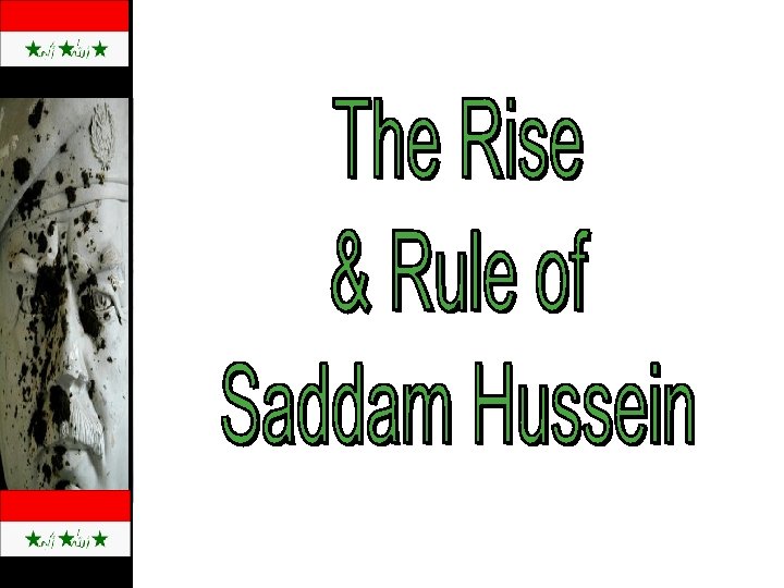 Saddam’s Early Political Career « After 1963 coup, he was put in charge of the security service for the Baath party. « 1979 he became president of Iraq when al-Bakr was persuaded to step down. Saddam at 17.