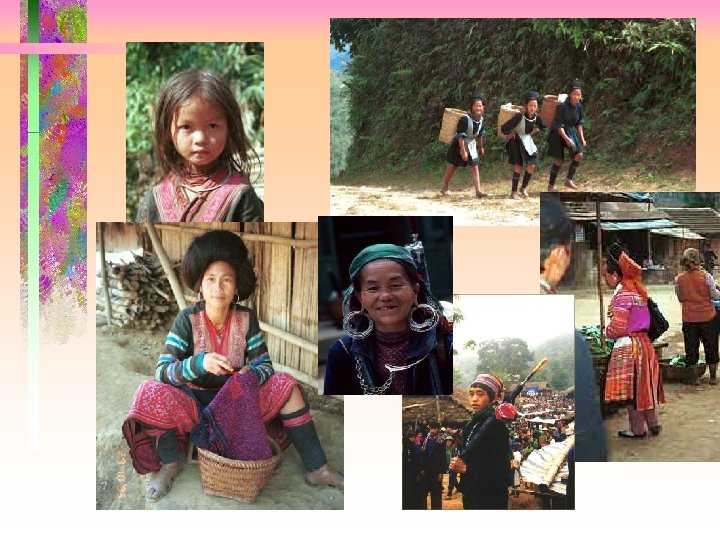 Vietnam • The Kinh (or Viet) people are 85 -87% of Vietnam's population. • The 13 -15% of ethnic minority groups include the Tay, Thai, Muong, H'Mong, Dao, and Khmer, occupy about 2/3 Vietnam’s land. • There is no official discrimination system but minorities remain at the bottom of the educational and economic ladder. Many marry young, have children and die early • Each group has its own language and culture. • Ethnic groups live close to one another and many know the language of others through everyday relations.