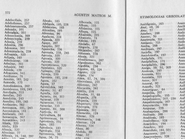Bibliografía: MATEOS MUÑOZ, A. : Compendio Etimologías grecolatinas del español, Esfinge, México, 2012.