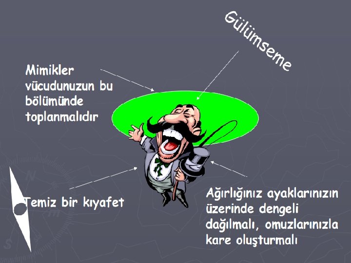 Mimikler vücudun bu bölümünde toplanmalıdır Temiz ve tertipli bir kıyafet Neşeli ve gülümseyen bir surat