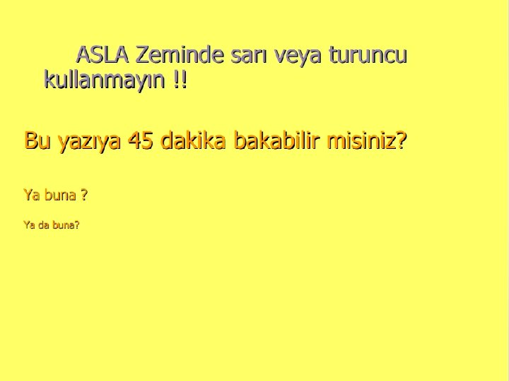 FONT BÜYÜKLÜĞÜ (Nasıl tahmin edilecek? ) • ► 2 metre öteden bilgisayar ekranına bakın. • ► Vurgulamayı renklerle yapın