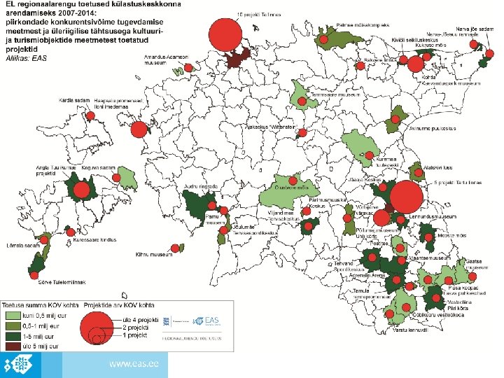 Millele EAS keskendub? • Eesti ekspordivõimelise majanduse kasvatamine ja lisandväärtuse kasv • Konkurentsivõime kava “Eesti 2020” eesmärgi täitmine – lisandväärtus töötaja kohta jõuab 80%-ni ELi keskmisest 2020. aastaks • Panustame teadus- ja arendustegevuse mahukasse ettevõtlusse, tooteuuendustesse, eksporti ja ettevõtete kasvu • Välisinvesteeringute osas keskendume suuremat lisandväärtust loovate investeeringute Eestisse toomisele • Regionaalvaldkonnas fokusseerime ettevõtluse ja ettevõtluskeskkonna arendamisele maapiirkondades.