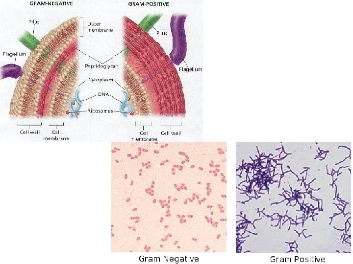 Identifying Prokaryotes: • Two different types of cell walls are found in eubacteria. • A method called gram staining tells them apart. ØGram-positive bacteria have thick cell walls with large amounts of peptidoglycan. ØGram-negative bacteria have thinner cell walls inside an outer lipid layer. Copyright Pearson Prentice Hall