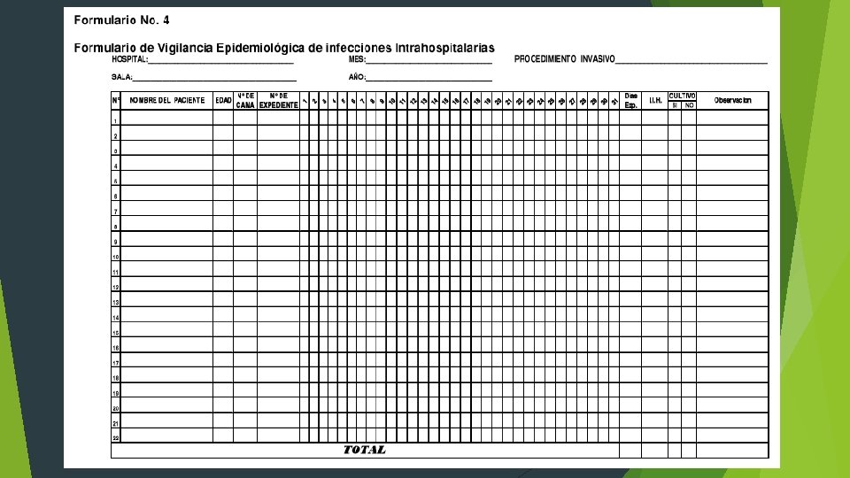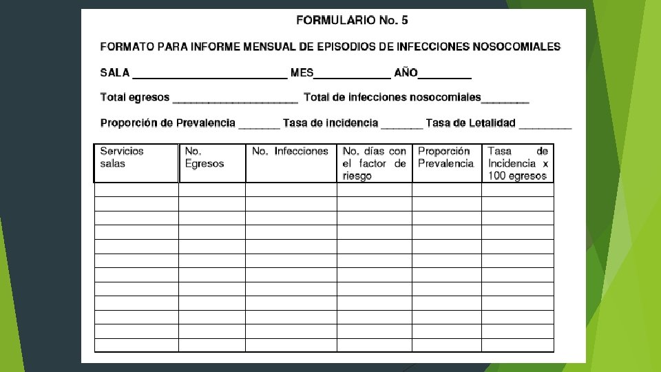 Formulario de supervisión de ventilación mecánica Formulario de supervisión de catéter venoso periférico Formulario de supervisión de lavado clínico de manos Formulario de supervisión de lavado quirúrgico de manos