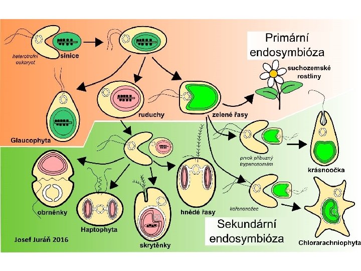 Chlorarachniophyta • • • Fylogeneze - sekvence 18 S r. RNA Příbuznost s meňavkovitými prvoky Nuklemorf Příklad seriální endosymbiozy Zástupci: Chlorarachnion reptans, Cryptochlora