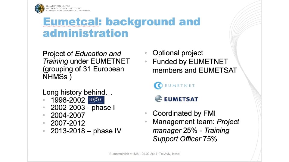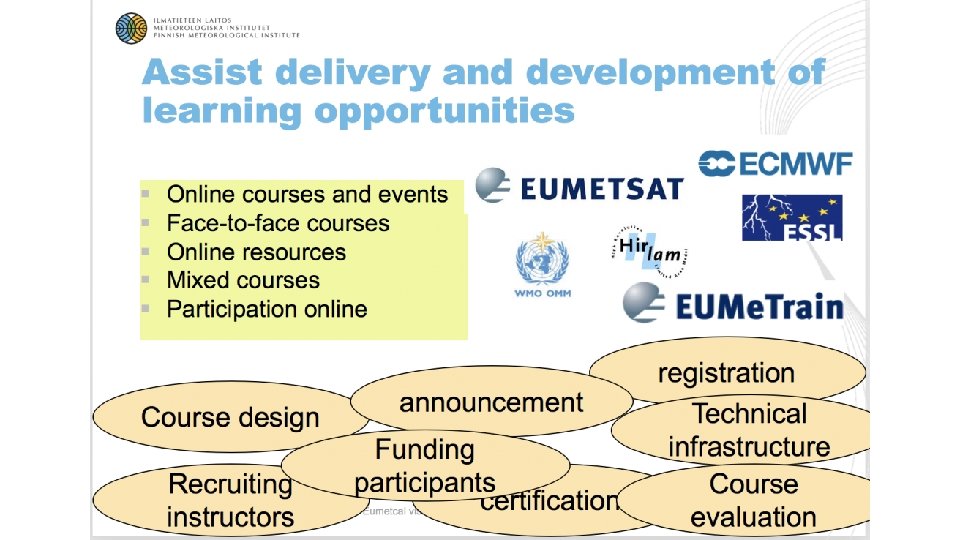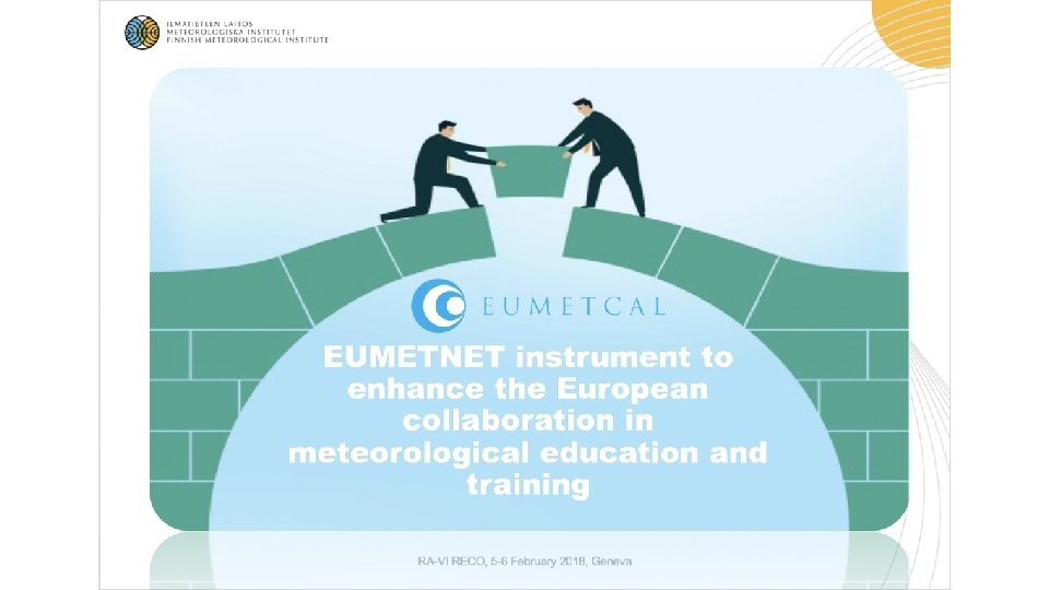 Ultimate goal Eumetcal 2 Ø Increase the education and training opportunities for our members in the EUMETNET domain AND Ø Prevent that we double work
