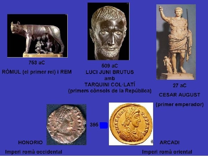 MONARQUIA 753 -509 a. C REPÚBLICA 509 – 27 a. C IMPERI 27 a. C-476 d. C