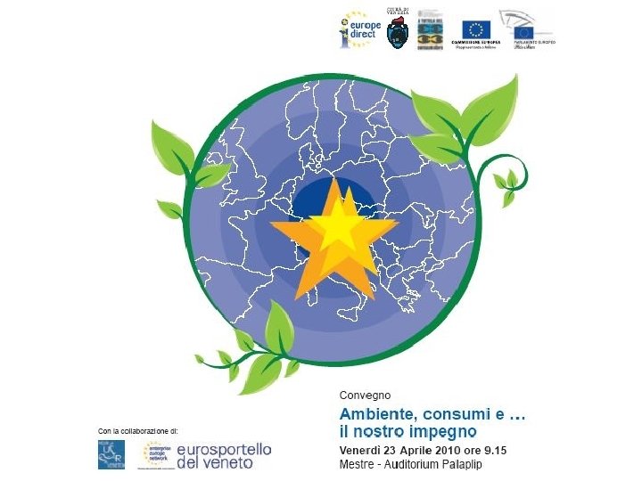 PERCHE’ QUESTO CONVEGNO Perché rientra nelle priorità d’azione della Commissione Europea per il 2010 che corrispondono alle “priorità di comunicazione” che assegna annualmente alle sue reti d’informazione sul territorio. • • Crescita economica Trattato di Lisbona Lotta ai cambiamenti climatici 2010 anno europeo Lotta alla povertà e esclusione