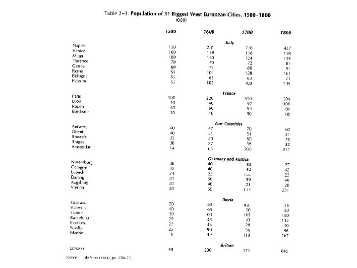 Europe • Despotism mitigated by law, territorial partitions, division of power between center (crown) and local authority; • Fortune(? ): fall of Rome and the weakness and division: – Dream of unity persisted to the present, fragmentation generally seen as a great misfortune (EU? ); – Fragmentation strongest brake on oppression; – Europe safe form single-stroke conquest; • Mongol 13 th (had to cut their way); • Turks – twice at the walls of Vienna (1529, 1683); • Europeans reasonably secure were able to pursue their own advantage; • Period of population increase and economic growth up to 1350; – Black Death – 1/3 or more died – till 1500 period of rebuilding; – Increase in wages, rationalization of agri (animal production) -> raw materials for industry, higher demand; – West – specialization, cities, nuclear family vs. East – political oppression, second serfdom;