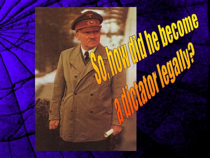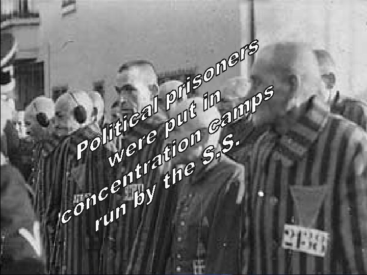 q The Reichstag, the building where the German government met, burned down February 1933 q A communist was found inside the building. He admitted responsibility after having “a little chat” with Nazi officials q Chancellor Hitler was able to convince people that the Communists were trying to take power by terrorism q He was able to have the Communists banned from the Reichstag