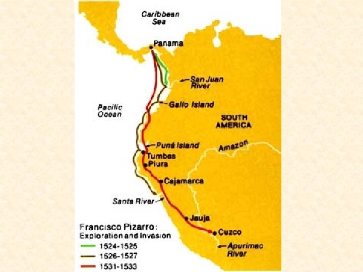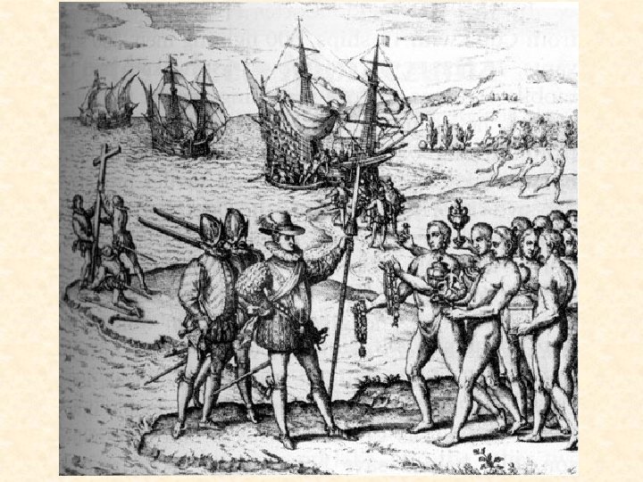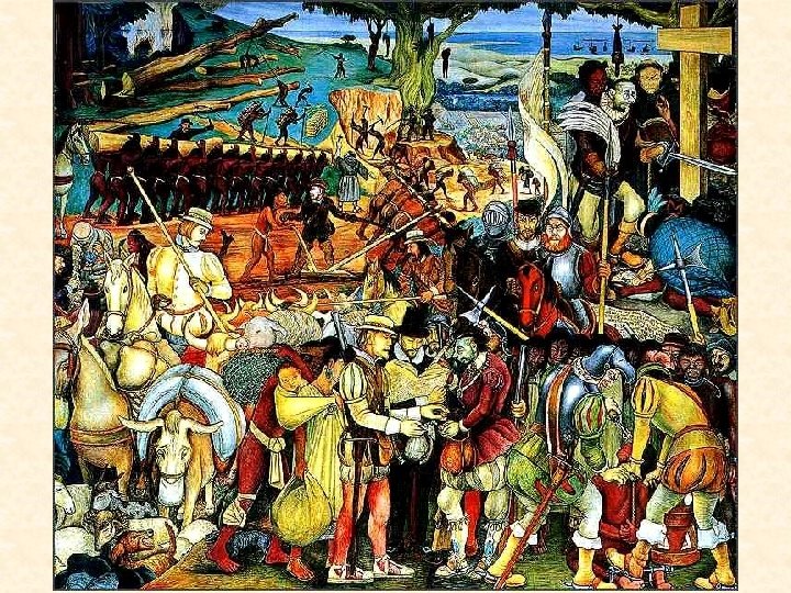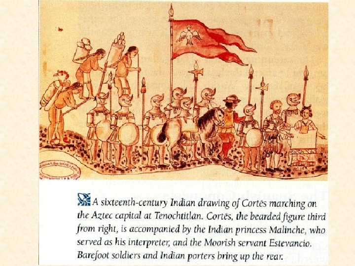 Cortez is able to conquer because of several factors: • Superior weaponry – cannons & rifles vs. arrows • Various native groups – Cortez received the help of a native woman translator named Malinche. Cortez finds out that many of the other native tribes in the area hated the Aztecs due to their harsh practices such as human sacrifices. So through Malinche, Cortez is able to convince the other natives to attack the Aztecs. • Disease – Like the situation with Columbus, the Aztecs did not have any immunities to the same diseases that wiped out the Taino.