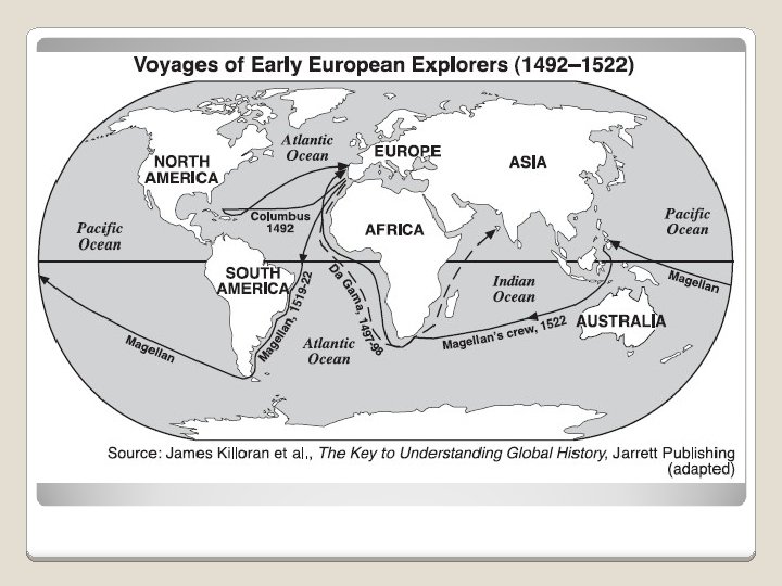 Portugal ◦ Prince Henry strong government support ◦ 1419 created his own navigational school ◦ Died in 1460, but by then, Portugal had established a series of trading posts along the shores of Africa. Pepper, cinnamon, cloves, gold, silver, jewels, and slaves. Later, wished to find a sea route to Asia. ◦ Dias made it around the tip of Africa but ultimately failed. Gave room to Vasco de Gama who reached the coast of India. Who?