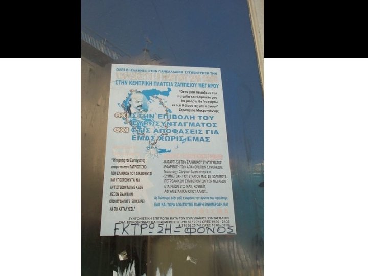 Euroscepticism in Greece �The main opposition against EU in Greece comes from three ideological areas �The Far-right-EU poses a threat to Greek Identity �The Left-The EU is a “capitalist’s Lobby” �The Church-threat to Greek Identity, traditionalism, anti-European sentiments