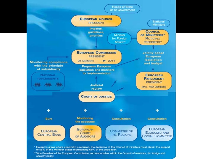 Structure of the EU Constitution � Part I defines the values, objectives, powers, decision-making procedures and institutions of the European Union. � Part II contains the “Charter of Fundamental Rights”. � Part III describes the policies, the internal and external action, and the functioning of the European Union. � Part IV contains general and final provisions, including the procedures for adopting and revising the Constitution.