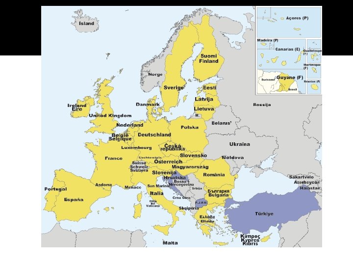 European Constitution �On 25 March 1957 in Rome, 6 countries (Belgium, France, Germany, Italy, Luxembourg and the Netherlands), signed a Treaty establishing the European Economic Community (EEC Treaty). �This has since been followed up by other European treaties (the Maastricht Treaty, the Amsterdam Treaty, etc. )