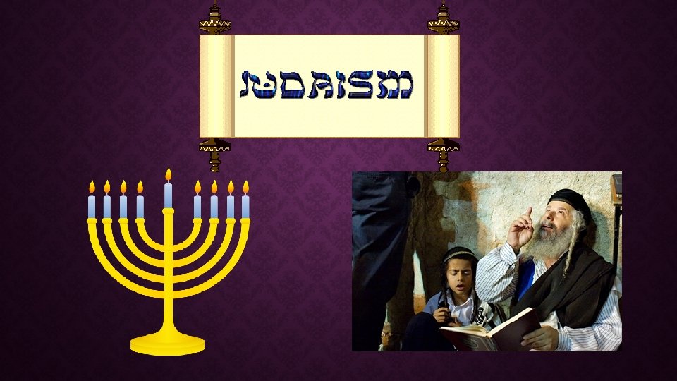 JUDAISM • Jews believe that they descended from Abraham and Sarah, the first people to worship Yahweh (God). • Abraham lived at least 3, 700 years ago in what is now Iraq. • Jews have special holidays and rituals, such as Hanukah, Bar Mitzvahs, and Rosh Hashanah which is the Jewish New Year.