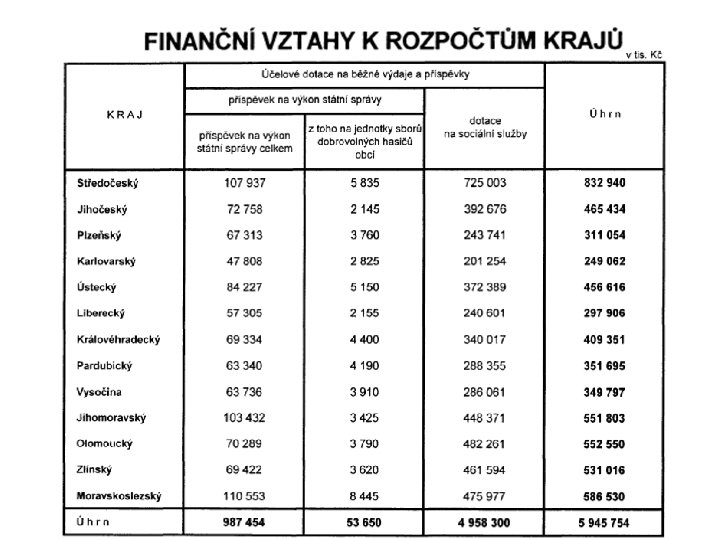 Bilance příjmů a výdajů krajů (v mld. Kč) Rok Celkové příjmy Celkové výdaje Bilance 2002 37, 6 35, 8 1, 8 2003 95, 8 94, 4 1, 4 2004 100, 7 99, 9 0, 8 2005 113, 5 112, 5 1, 0 2006 122, 1 124, 4 -2, 3 2007 125, 4 124, 3 1, 1 2008 131, 7 133 -1, 3 2009 136, 9 144, 6 -7, 7 2010 140, 6 138, 7 1, 9 2011 136, 4 137, 9 -1, 5 2012 136, 6 140, 8 -4, 2 Pramen: Ministerstvo financí ČR [citováno 29. 11. 2013]. Dostupný z: http: //www. mfcr. cz,