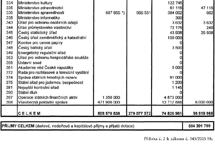 Bilance příjmů a výdajů SR (rok 2006)