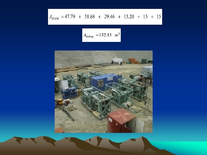NECESIDADES DEL CAMPO PARA LA UBICACIÓN DE LAS FACILIDADES DE SUPERFICIE • En base a las medidas de largo y ancho de los equipos, se procedió a realizar los cálculos de las áreas que ocupan los mismos.